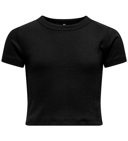 Nice Kids Only t-shirt in black with a ribbed structure. The T-shirt has a round neckline with a narrow edge and short sleeves.