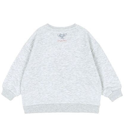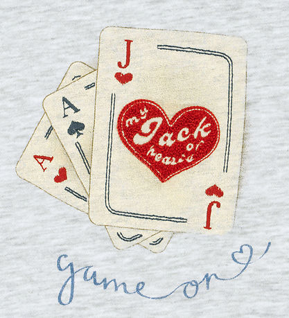 Charming Konges Sløjd sweatshirt in light grey melange with a print of three playing cards on the front with embroidered details and terrycloth. In the neck there is a little logo print. The Konges Sløjd sweatshirt has a round neckline, long sleeves and rib in all openings. Inside there is soft, brushed cotton.