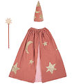 The Meri Meri coat closes at the front under the chin with a push-botton. The cape consists of four layers, where the three outer layers consist of tulle, while the inner layer consists of organza. The wand's ribbon creates movements that will make it appear as if the wand is sending out a glow of magic when the kid uses it.