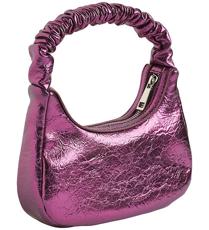 Elegant Molo shoulder bag in a beautiful, metallic purple. The Bag has a unique design with a structured surface and a practical zipper closure. The Molo bag has a unique, wrinkled carrying strap that gives a modern look.