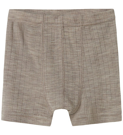Beautiful Name It boxers in grey with a fine rib structure. The boxer shorts have a good elastic at the waist, which ensures a comfortable fit. They are made of soft and breathable merino wool.