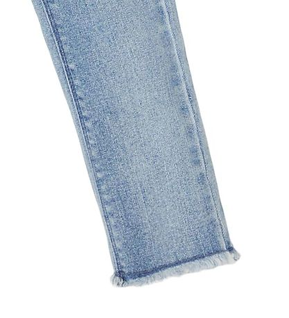 The Name It jeans opens at the front with a hook and zipper, and they can be tightened into the waist with internal, adjustable elastics. The Trousers have two open pockets both at the front and back, and around at the waist there are practical belt straps. The jeans are in a stretchable quality with decorative fringes at the leg openings.