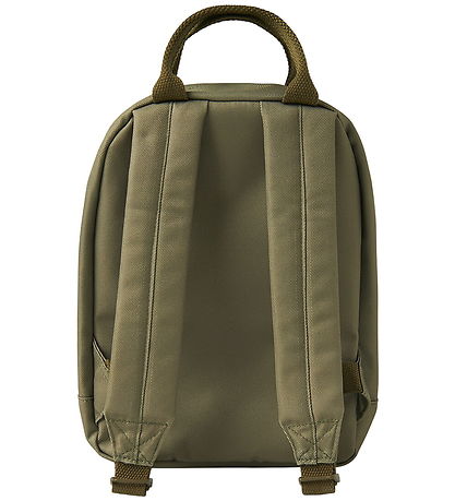 Practical Name It preschool backpack in a beautiful olive green colour. The Bag has a cute dino embroidery on the front.