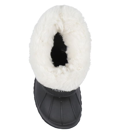 Beautiful Reima winter boots in black, and at the top of the shaft there is a wide edge of white, faux fur. There is a practical reflex on the heel.