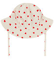 The Småfolk swim hats is shaped like a legionnaire hat with a round head shape and a sewn-in elastic at the neck, which ensures a comfortable fit. In front there is a firm but flexible brim, and at the back there is a long neck shade. The Sun hat is tied under the chin with practical drawstring.