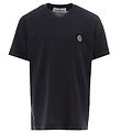 Nice Stone Island t-shirt in plain dark navy, and on the front there is a large logo embroidered in navy.