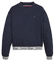 The Tommy Hilfiger sweatshirt has long sleeves, and wide ribbed edges in all openings. It can be opened at the left shoulder with two practical push buttons, and it is made of soft and stretchable cotton.