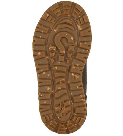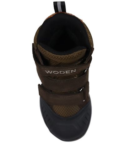 Beautiful Woden winter boots in brown textile and dark brown suede. The back of the boot has brown fish leather and a practical reflector, so it is easier to see the kid in the dark. The outsole is black with a brown base.