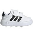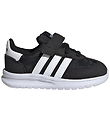 Stylish adidas Performance shoes in black imitation leather with the iconic white logo stripes, which give a timeless look. At the heel there is a white set at the top, with "adidas" printed in black.