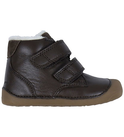The Bundgaard beginner boots have brown rubber outsoles that go up over the heel and toes, so the beginner boots are well protected against wear. The beginner boots are a barefoot model, which means that they have soft and flexible outsoles without heel drop, which promotes a natural gait and improves balance and ankle stability. The soft outsoles give the kid good contact with the ground, and under the bottom there is a tread pattern that ensures good footing.
