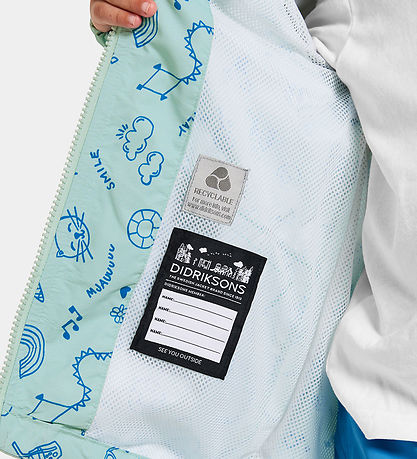 Beautiful Didriksons lightweight jacket in mint green with a blue, sweet summer print.