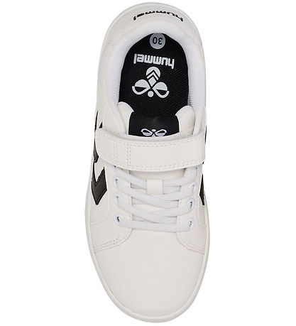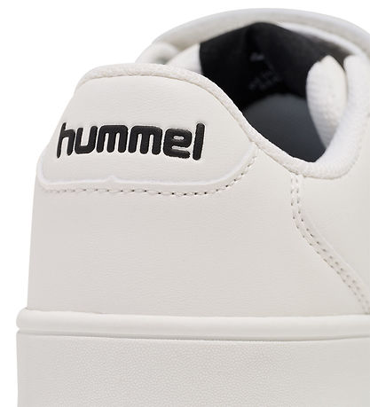 Cool Hummel shoe in white, imitation leather with Hummel shevrons in black.