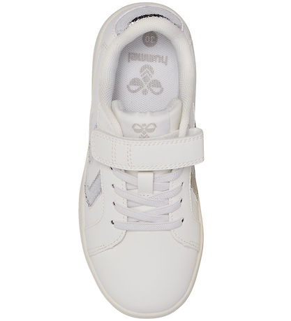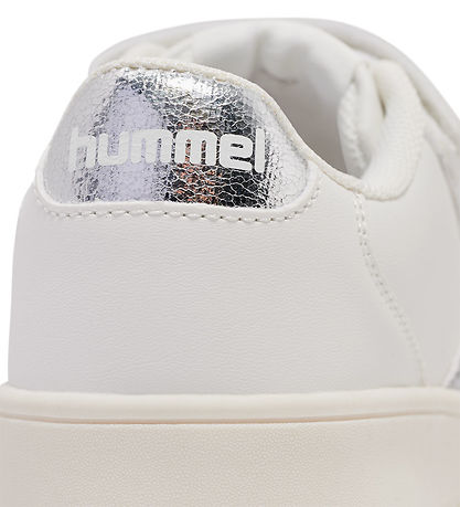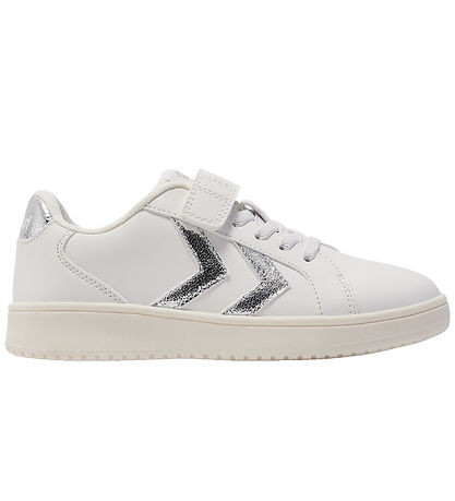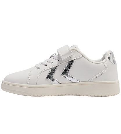 Stylish Hummel shoes in white with beautiful, glittering silver details on the heel and Hummel- shevrons in silver on the sides. on the sides.