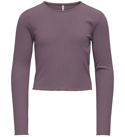 Elegant Kids Only blouse in dark purple with ribbed structure. The Blouse is a card model with a round neckline and long sleeves. It has wavy edges in the sleeve and waist opening, which gives a nice effect.