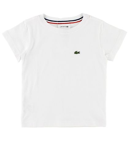 Gorgeous Lacoste T-shirt in white with the well-known Lacoste logo of the green crocodile on the left side of the chest.