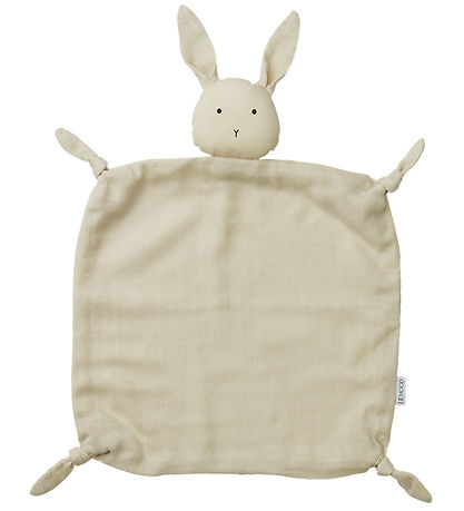 Cute Liewood comfort blanket in light beige with a sewn-on rabbit head with long, soft ears.