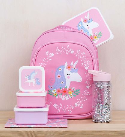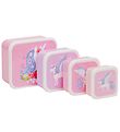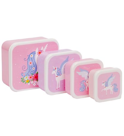 Cute A Little Lovely Company lunchbox set consisting of 4 lunchboxes in shades of pink with adorable prints of unicorns.