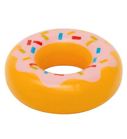 Entertaining MaMaMeMo play food, consisting of a donut with pink icing on top, with multicolour sprinkles on top.