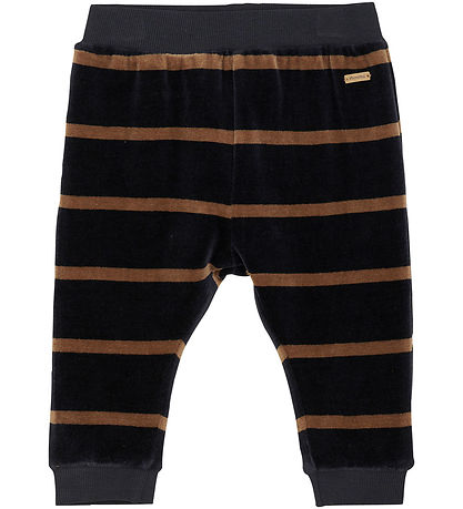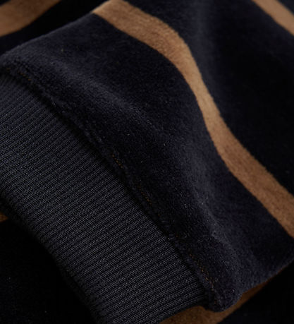 Beautiful Minymo velvet trousers with a beautiful design in black with brown horizontal stripes.