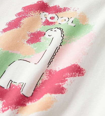 Charming Name It blouse in white with a fun dino illustration on the front. It has long sleeves and a round neckline, which contributes to the blouse's simple design. Name It offers a nice blouse with a unique print that attracts attention.