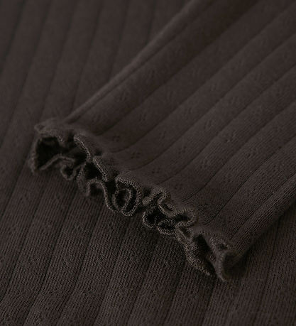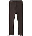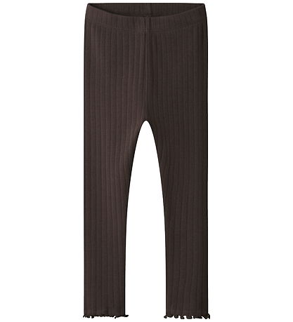 Stylish Name It leggings in a deep, brown shade with an elegant rib structure and a beautiful pointelle. The Name It leggings have an elastic waist and cute, wavy edges at the ankles.