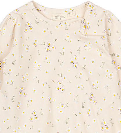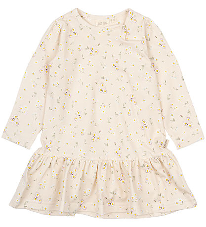 Beautiful Petit Piao Dress with long sleeves in beige with an all-over floral print. The Dress has a nice ruffled finish and opens with a push-botton at the left shoulder.