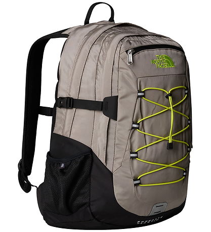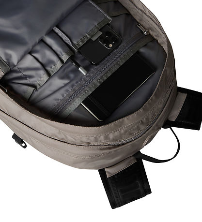 The North Face backpack consists of two large Rum, of which the main compartment can be used for books and binders with a padded 15'' computer sleeve for the laptop. The front Rum has an internal organization with a zipper pocket. On the outside there is a smaller zipper pocket for the most important small items. On the sides there are two water bottle pockets in mesh, and on the front an elastic system for external storage.