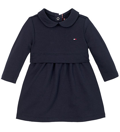 Elegant Tommy Hilfiger dress with long sleeves in navy. The Dress has a fine collar and a discreet logo on the chest that adds a stylish touch to the classic design.