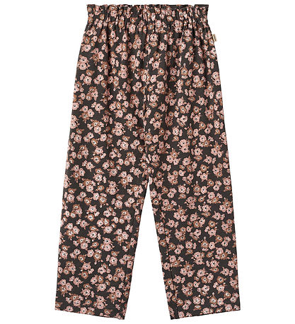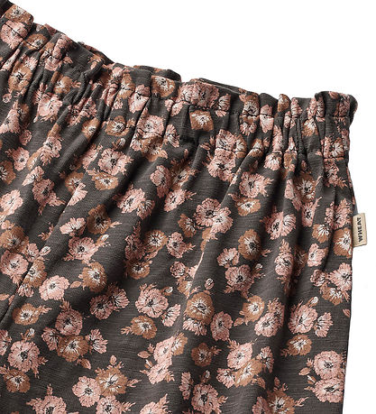 Beautiful Wheat trousers in dark grey with an all-over floral print in shades of pink and brown.