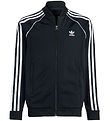 Stylish adidas Originals cardigan in a deep, dark green colour with the classic three stripes along the sleeves in black. The Cardigan has a mid-high throat and a full-length zipper. The adidas Originals logo is discreetly placed on the chest, giving a recognizable look. Ribbed edges at the wrists and bottom ensure a good fit.