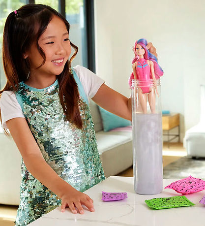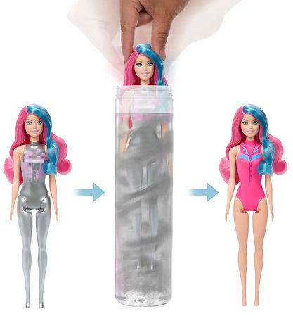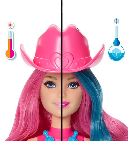 Colourful Barbie doll with cool details in the hair. To discover what the doll really looks like, dip it in water, and depending on the temperature of the water, a new colour dolls.