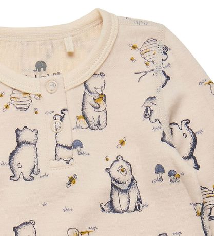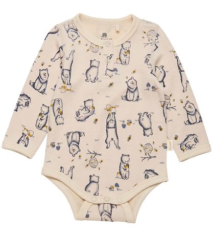 Fine CeLaVi bodysuit in cream with an all-over-print of navy bears with honey.