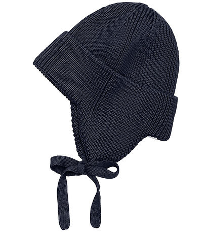Lovely Color Kids beanie in two layers with an exterior of a knitted wool blend in navy blue and an inner side of smooth-woven cotton.