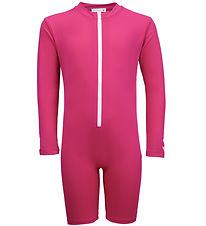 The main difference between swimwear and and coverall swimsuit is the UV protection. Some types of UV radiation can get through normal swimwear, and kids therefore risk getting a sunburn.