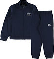 Beautiful EA7 sweat set in navy consisting of a cardigan and a pair of sweatpants with white logo prints.