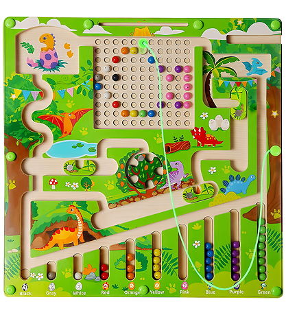 The Hemmingsen Kids Maze has magnetic parts, colorful balls, 13 double-sided card with images and number placements from 1 to 10. With the included magnetic rod, the balls can be guided through the maze or placed on the cards with images.