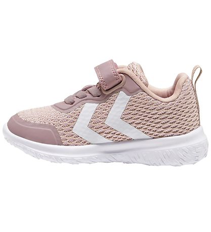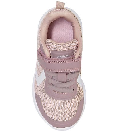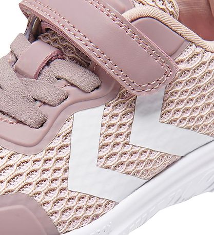 Cute Hummel sneakers in pink mesh with PU details. The shoes have two Hummel shevrons in discreet pink on both sides.