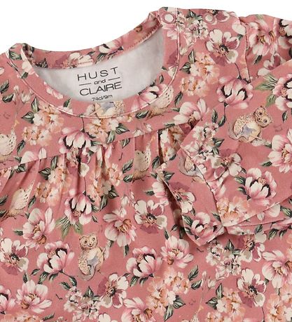 Beautiful Hust and Claire dress in pink with an all-over-print of flowers and owls.