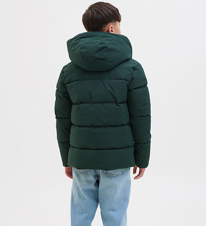 Lovely Jack & Jones puffer jacket in dark green with horizontal stitching.
