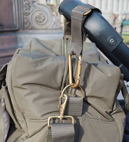 The Konges Sløjd pushchair straps make it possible to attach your Konges Sløjd changing bag to the stroller or pram. The pushchair straps are easy to fit and fit all types of pram and pushchair handlebars. The pushchair straps are attached to the pram using velcro and have a carabiner hook at the bottom so that the diaper bag's D-rings can be attached.