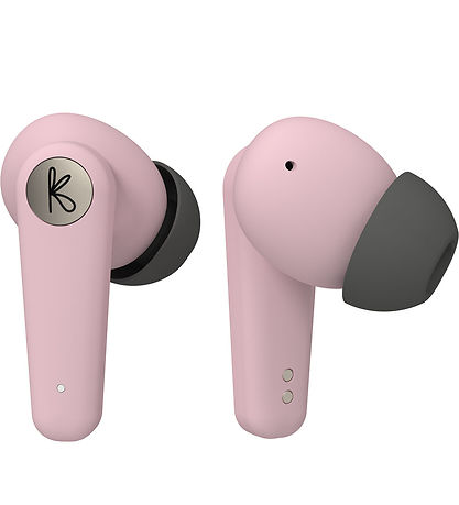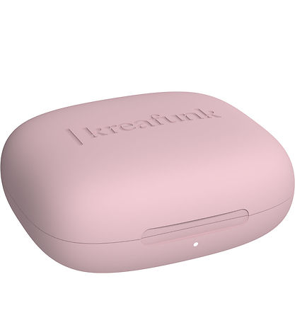 Beautiful Kreafunk headphones in a pink color theme and with a pink charging case.