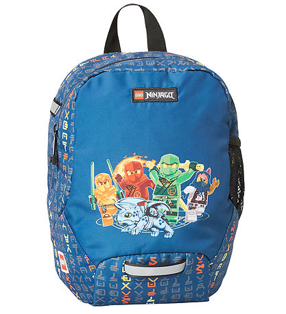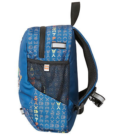 Cool LEGO® preschool backpack in blue with colorful Ninjago print.