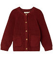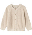 Charming Lil' Atelier cardigan in a light beige shade with long sleeves and a beautiful ribbed structure. The Cardigan from Lil' Atelier has decorative pink hearts on the front and discreet buttons in the same color tone along the closure.