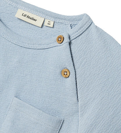 Elegant Lil' Atelier t-shirt in a soft, light blue shade.