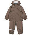 Fine Mikk-Line rainwear consisting of a rain jacket and a pair of rain pants in plain black PU.