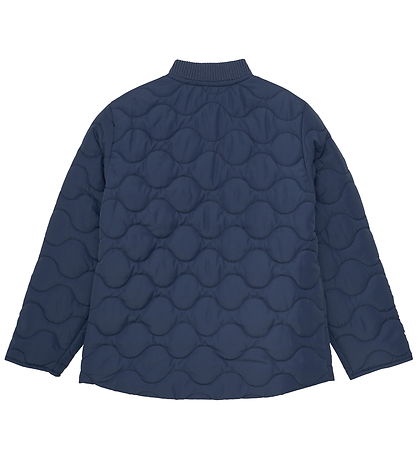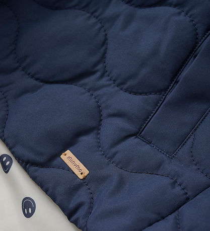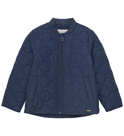 Fine Minymo thermo jacket in navy blue with a wavy, quilted structure.