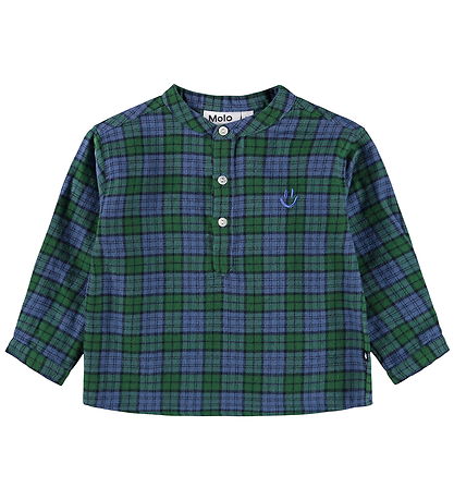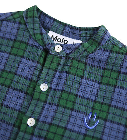 Attractive Molo shirt with long sleeves with a stylish check pattern of blue and green shades. The Shirt has a round neckline and three buttons at the front as well as a discreet logo embroidered on the chest. The Molo shirt is made of a soft flannel with a comfortable fit.