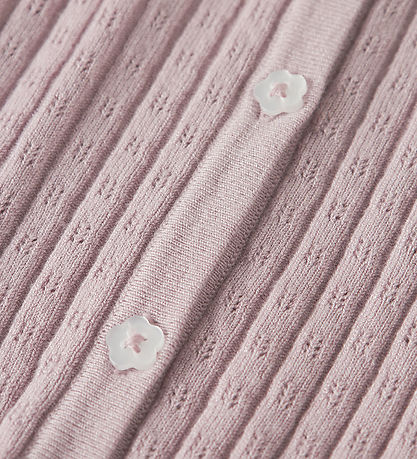 Beautiful Name It cardigan in a light, pink- purple shade with a delicate pointelle.