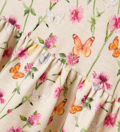 Lovely Name It dress in beige with an all-over floral print with cute butterflies in beautiful colours.
