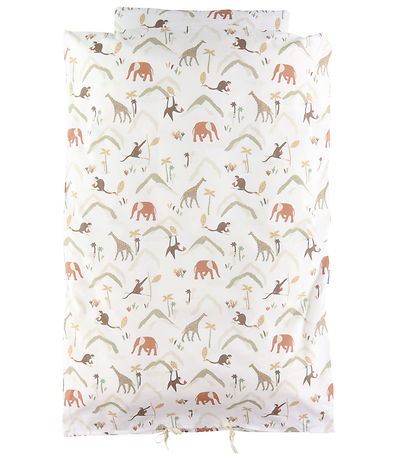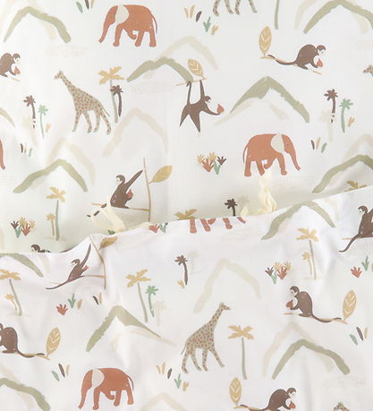 Fine Nørgaard Madsens bedding in white with an allover print of safari animal in shades of brown, green and yellow.